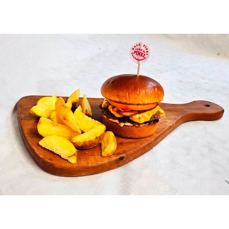 12,5bun, beef patty, fried cheese. lettuce, tomato, signature big pinki mix sauce