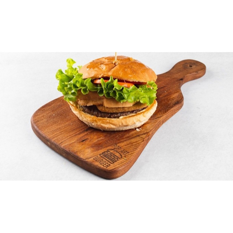 12,5bun, beef patty, fried cheese. lettuce, tomato, signature big pinki mix sauce