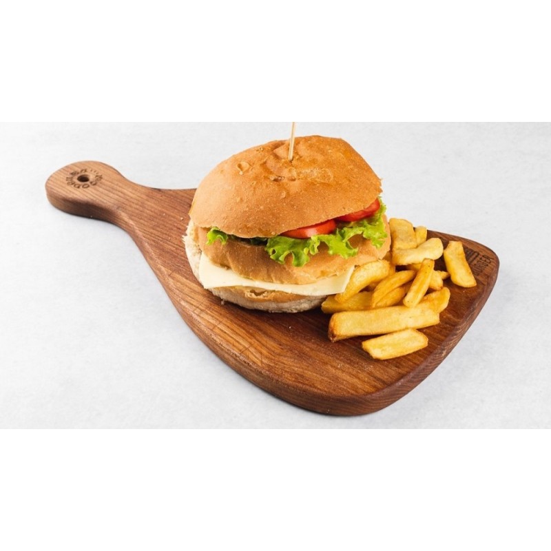 bombica, goveja pleskavica, pinki dresing. ocvrti sir, tatarska omaga, solata, paradižnik