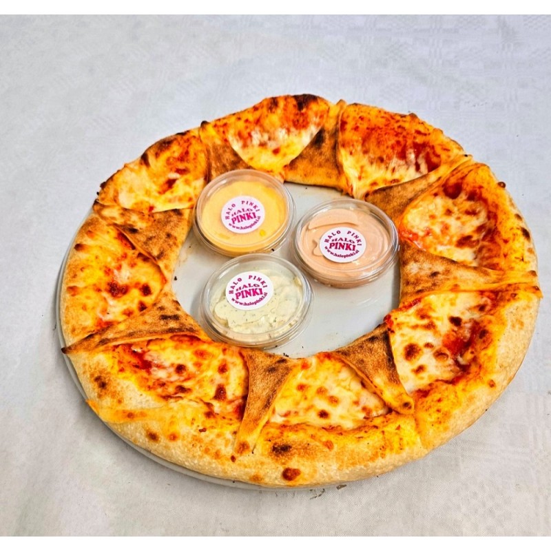 pelati z origanom, sir, pršut, tržaška omaka ( tris omak: domača, nacho, tatrska)