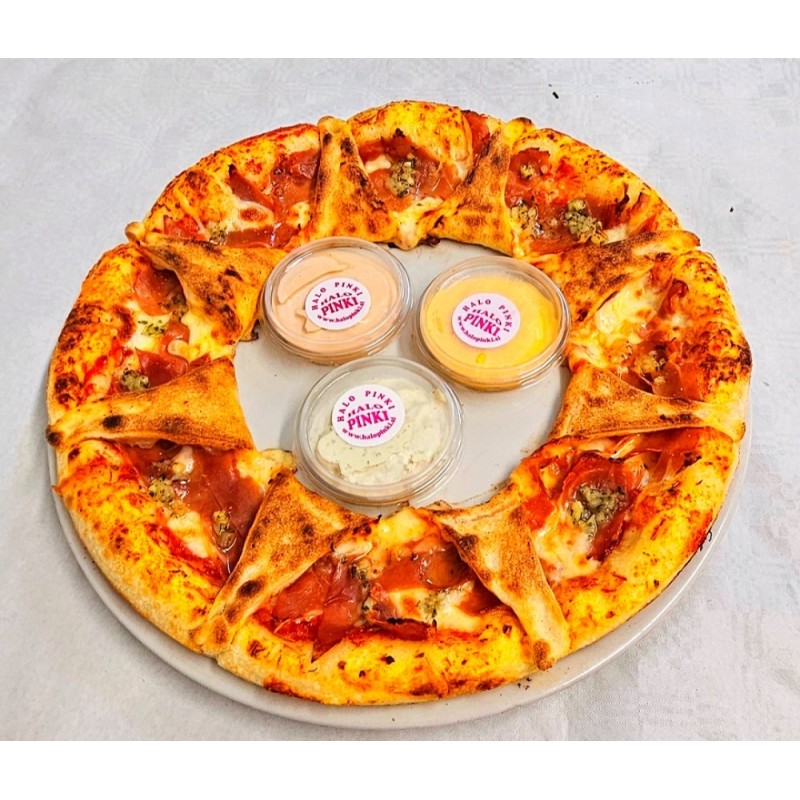 pelati z origanom, sir, pršut, tržaška omaka ( tris omak: domača, nacho, tatrska)